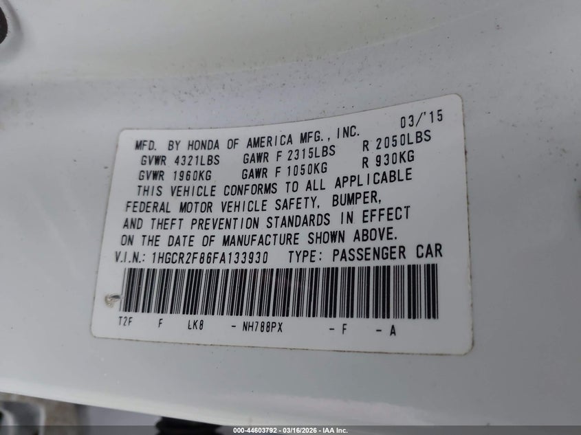 • 1HGCR2F86FA133930