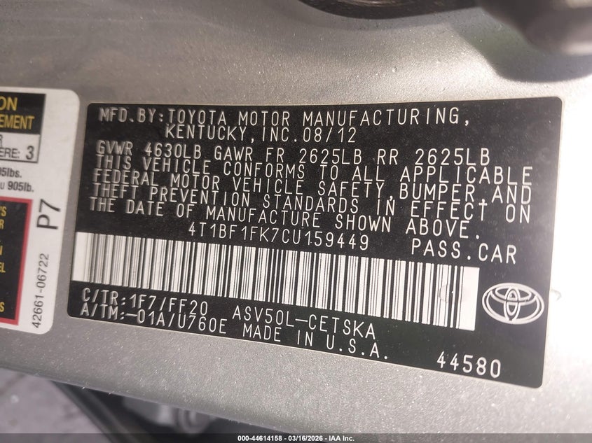 • 4T1BF1FK7CU159449