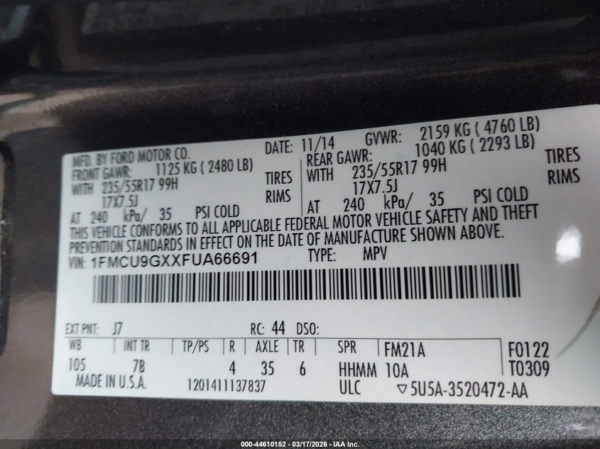 • 1FMCU9GXXFUA66691