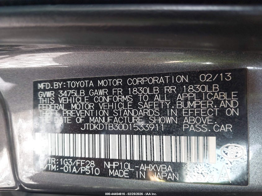 • JTDKDTB30D1533911