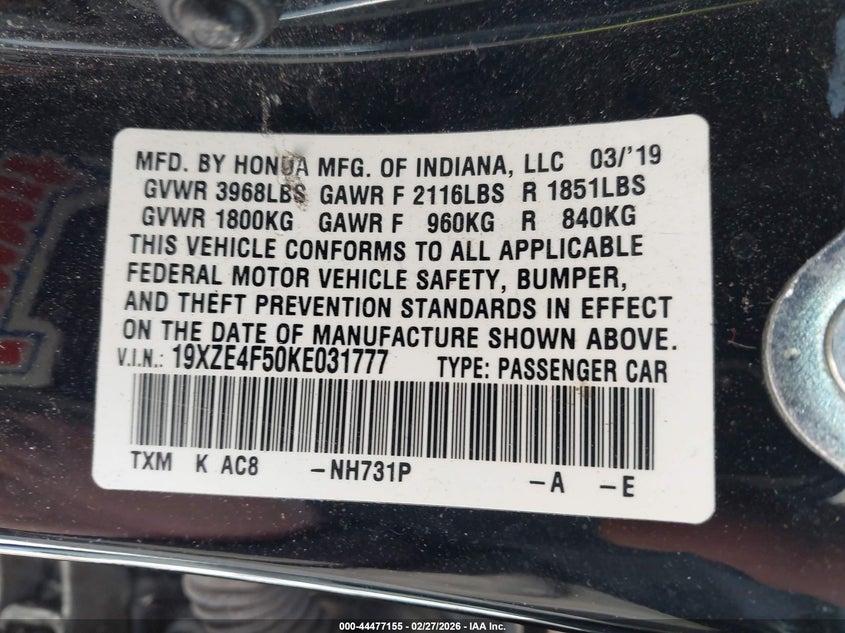 • 19XZE4F50KE031777
