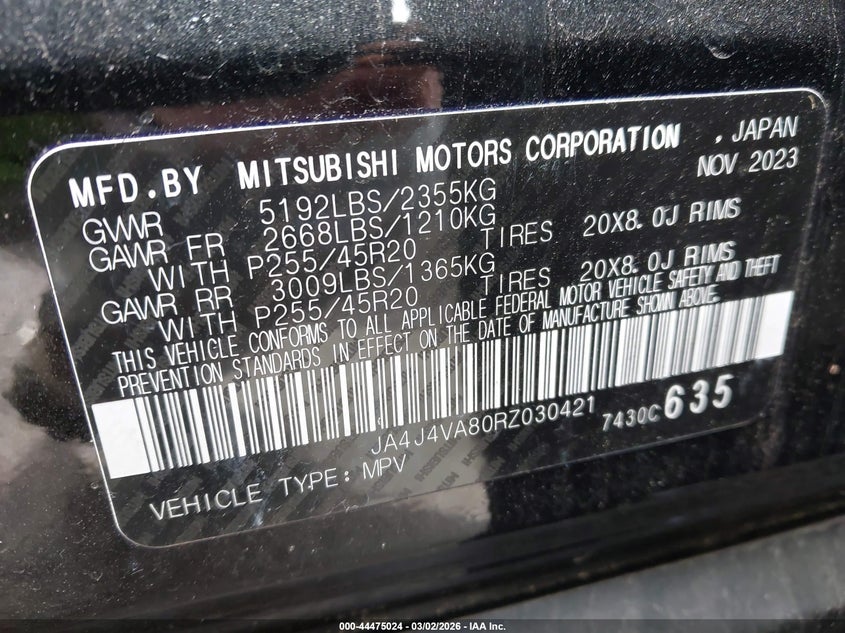• JA4J4VA80RZ030421
