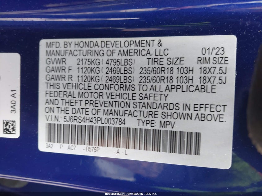 • 5J6RS4H43PL003784