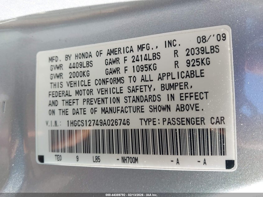 • 1HGCS12749A026746