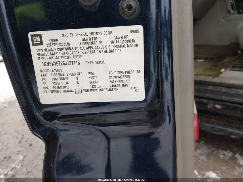 • 1GNFK16Z26J137113