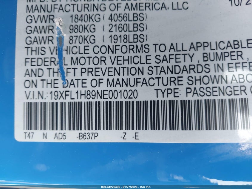 • 19XFL1H89NE001020