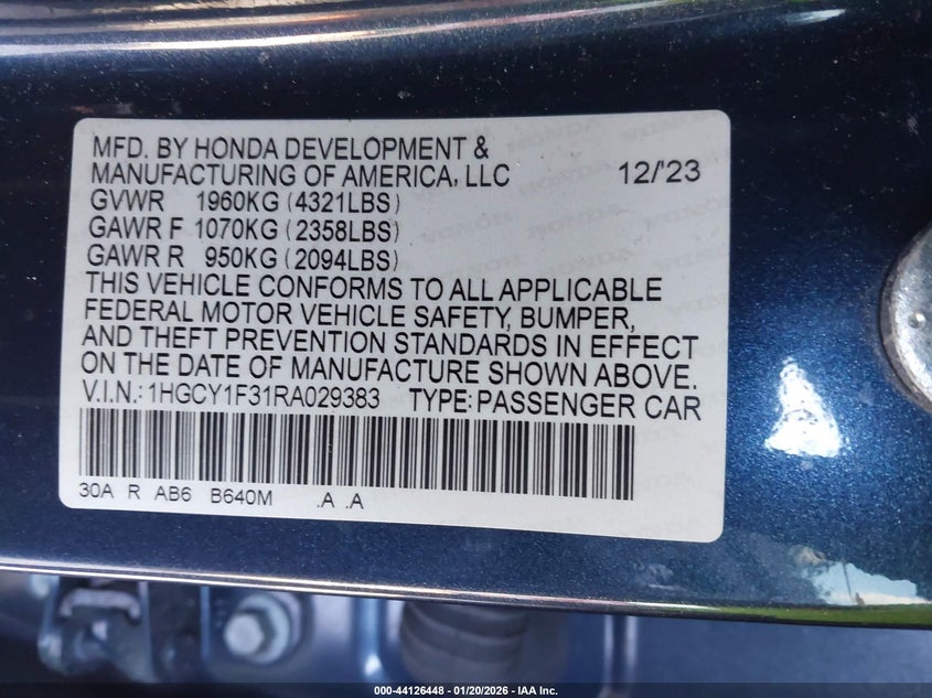 • 1HGCY1F31RA029383