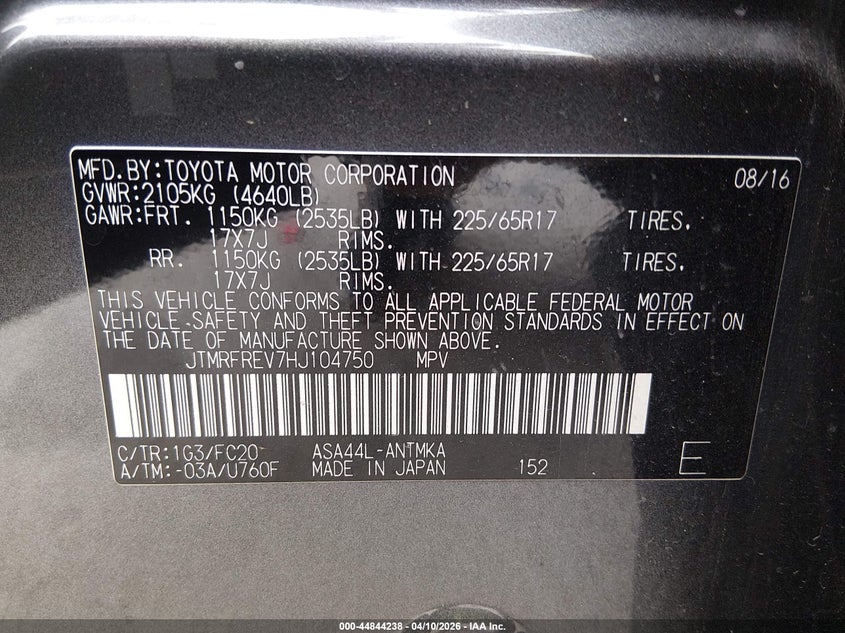 • JTMRFREV7HJ104750