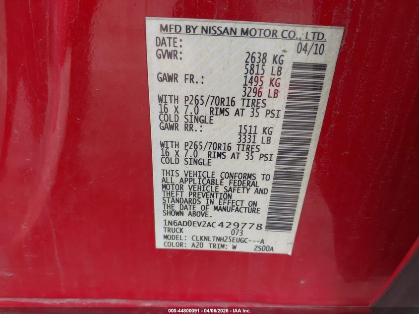 2010 NISSAN FRONTIER SE for Sale in Sussex, WI