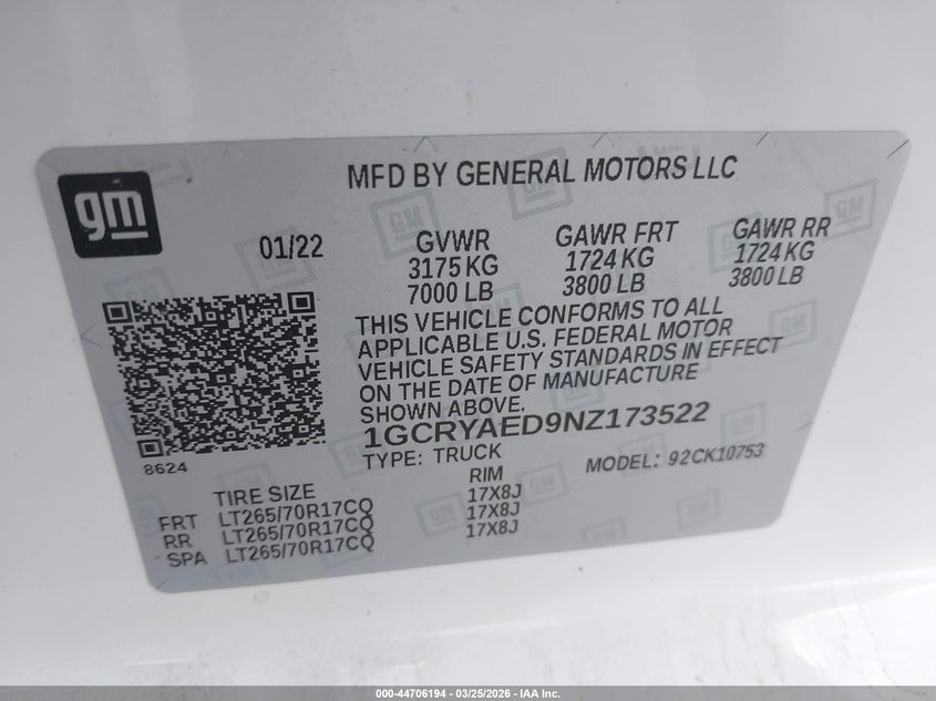 • 1GCRYAED9NZ173522