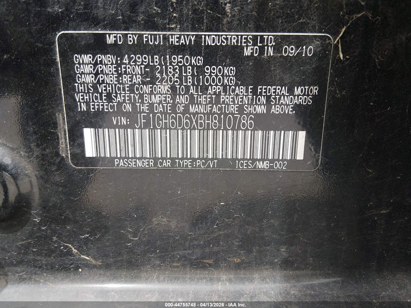 • JF1GH6D6XBH810786
