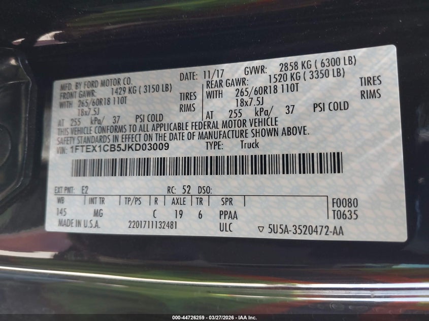 • 1FTEX1CB5JKD03009