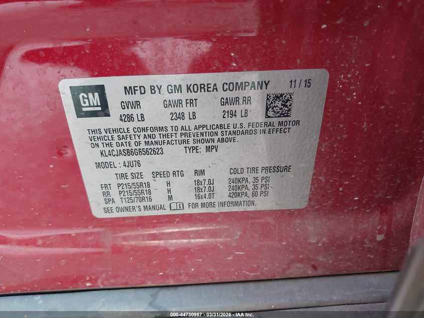 • KL4CJASB6GB562623