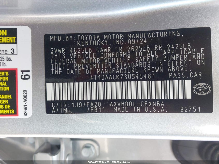 • 4T1DAACK7SU545461
