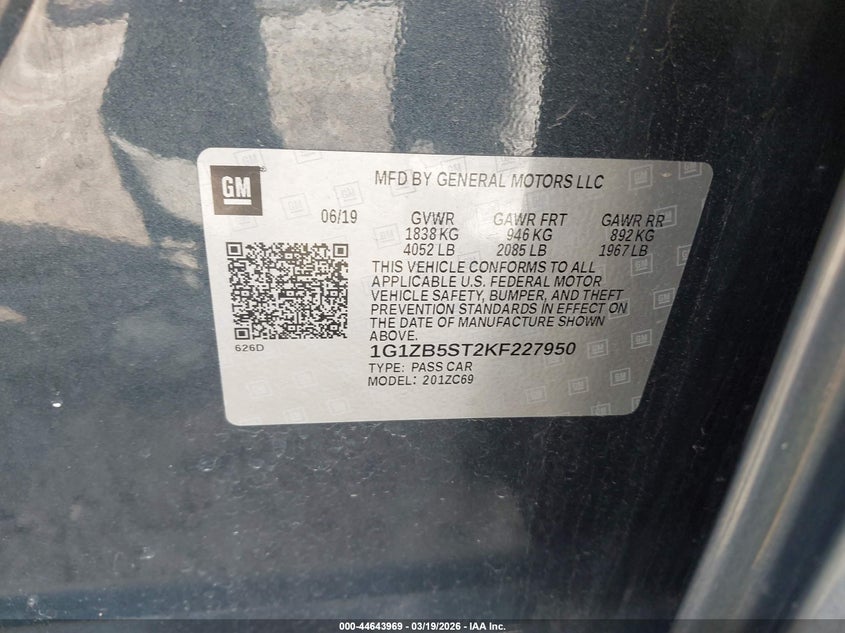 • 1G1ZB5ST2KF227950