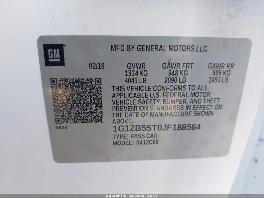• 1G1ZB5ST0JF188564