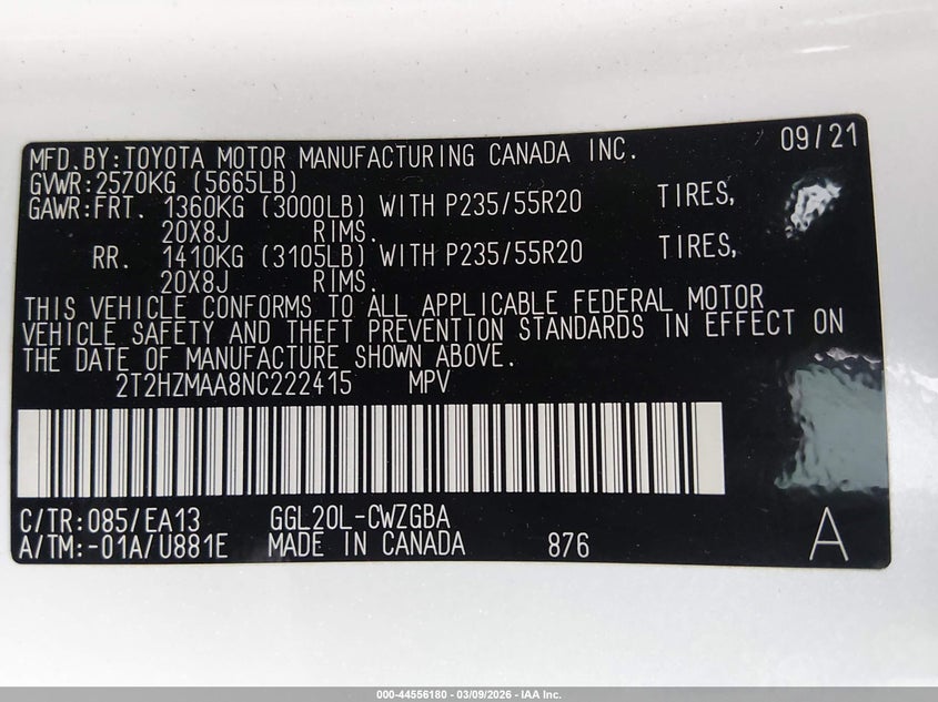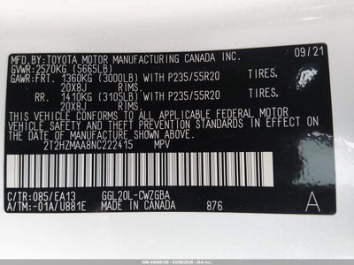 • 2T2HZMAA8NC222415