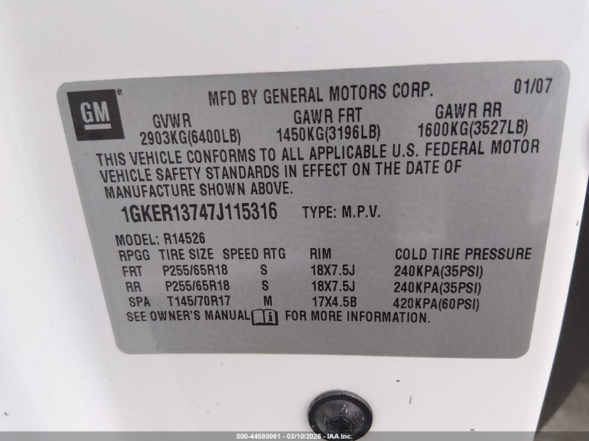 • 1GKER13747J115316