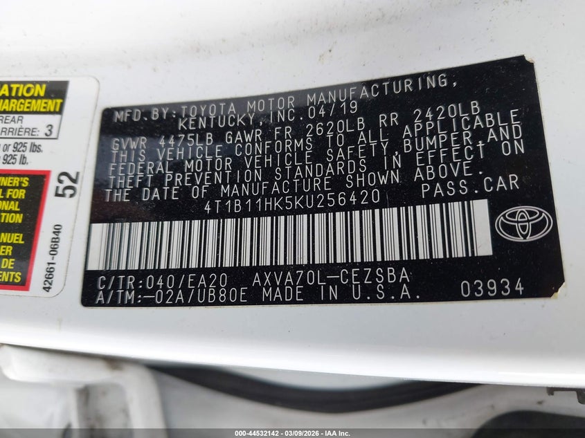 • 4T1B11HK5KU256420