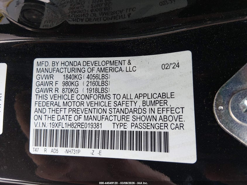 • 19XFL1H82RE019381