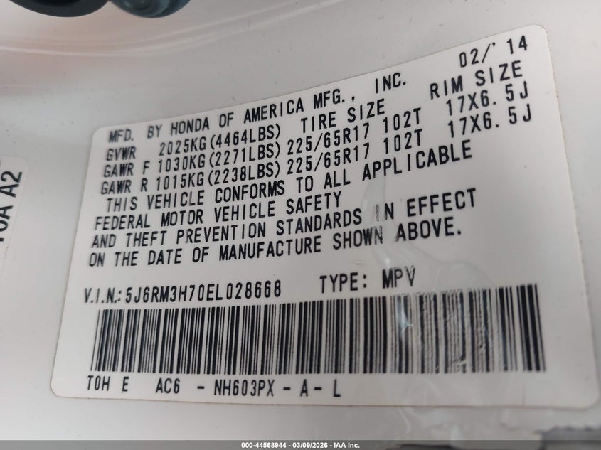 • 5J6RM3H70EL028668