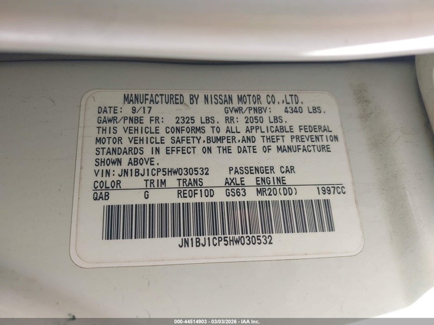 • JN1BJ1CP5HW030532