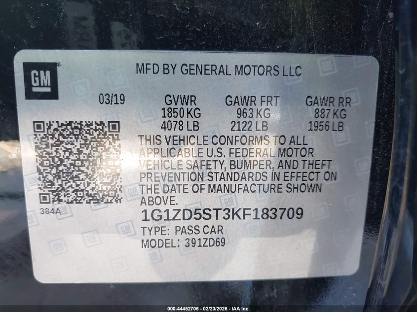 • 1G1ZD5ST3KF183709