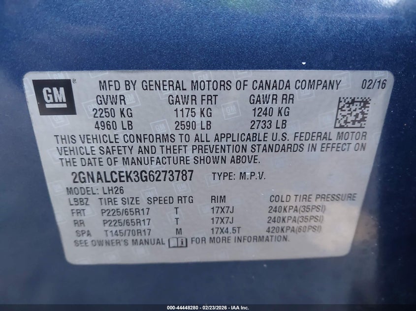 2016 CHEVROLET EQUINOX LT for Sale in Markham, IL