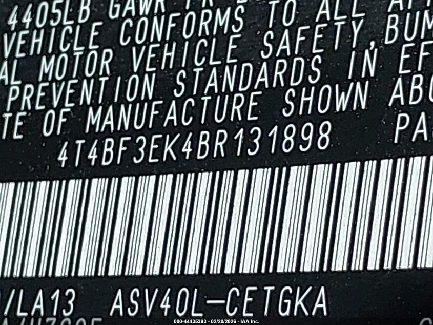 • 4T4BF3EK4BR131898