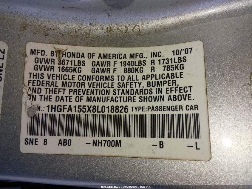 • 1HGFA155X8L018826