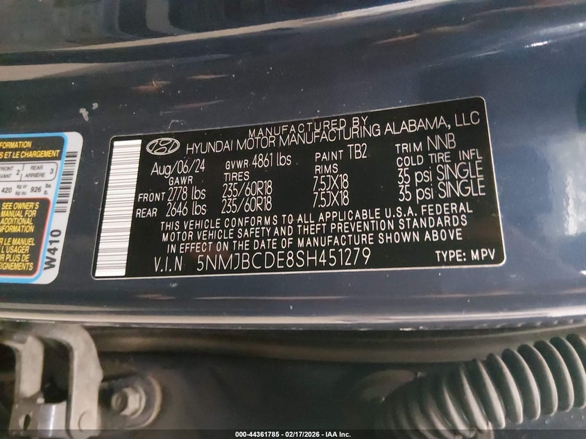 • 5NMJBCDE8SH451279