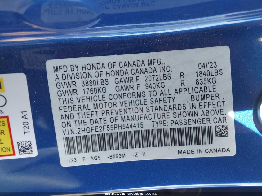• 2HGFE2F55PH544415