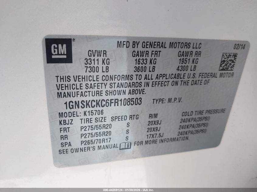 • 1GNSKCKC6FR108503
