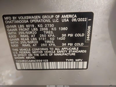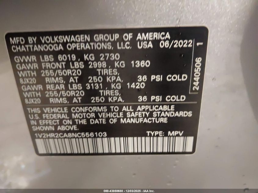 2022 VOLKSWAGEN ATLAS 3.6L V6 SE W/TECHNOLOGY for Sale in Waukee, IA