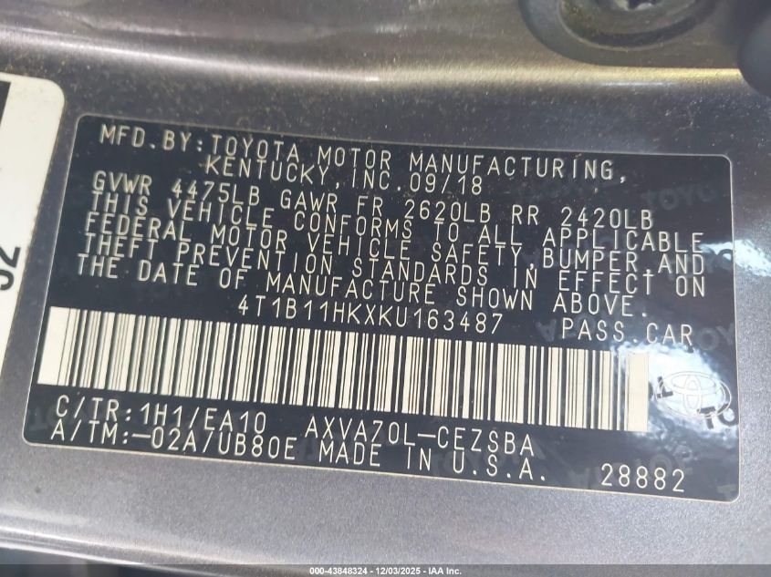 • 4T1B11HKXKU163487