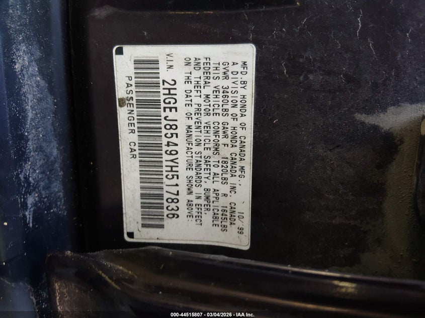 • 2HGEJ8549YH517836