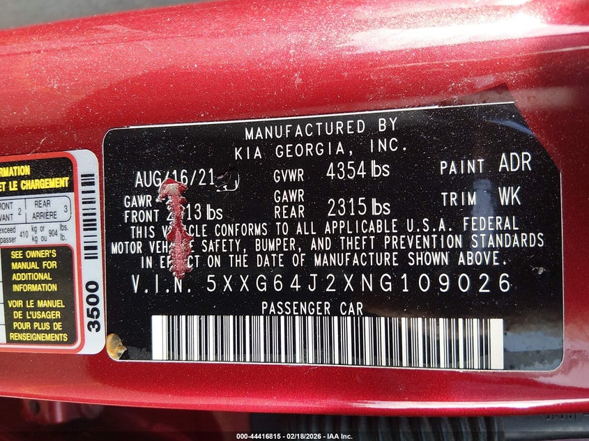 • 5XXG64J2XNG109026