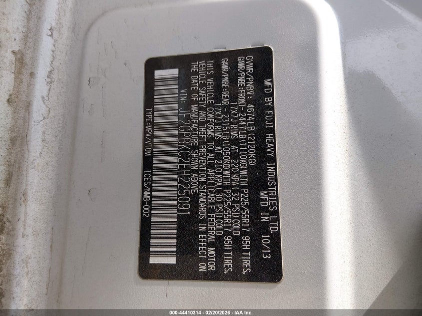 • JF2GPBKC2EH225091