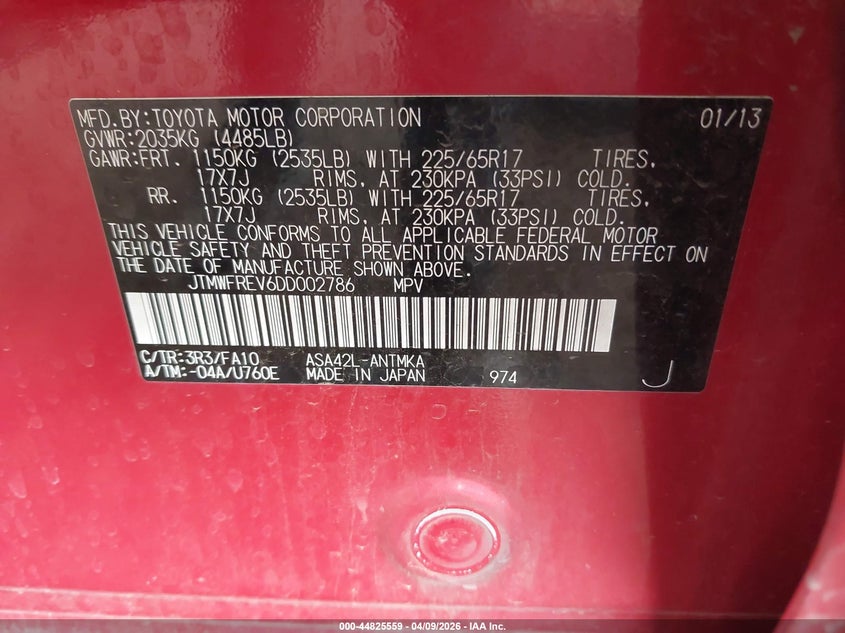 • JTMWFREV6DD002786