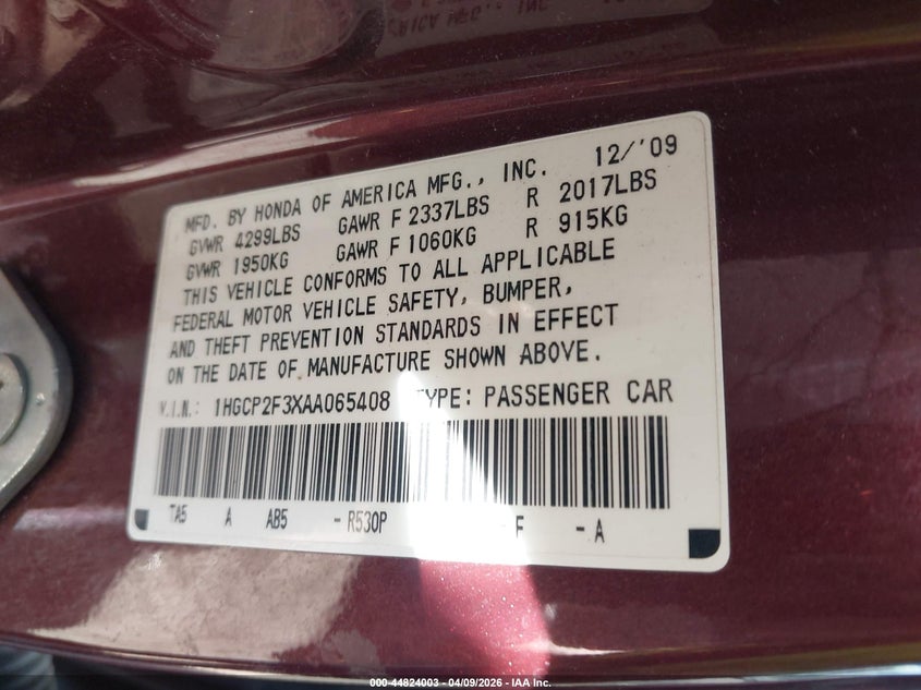 • 1HGCP2F3XAA065408