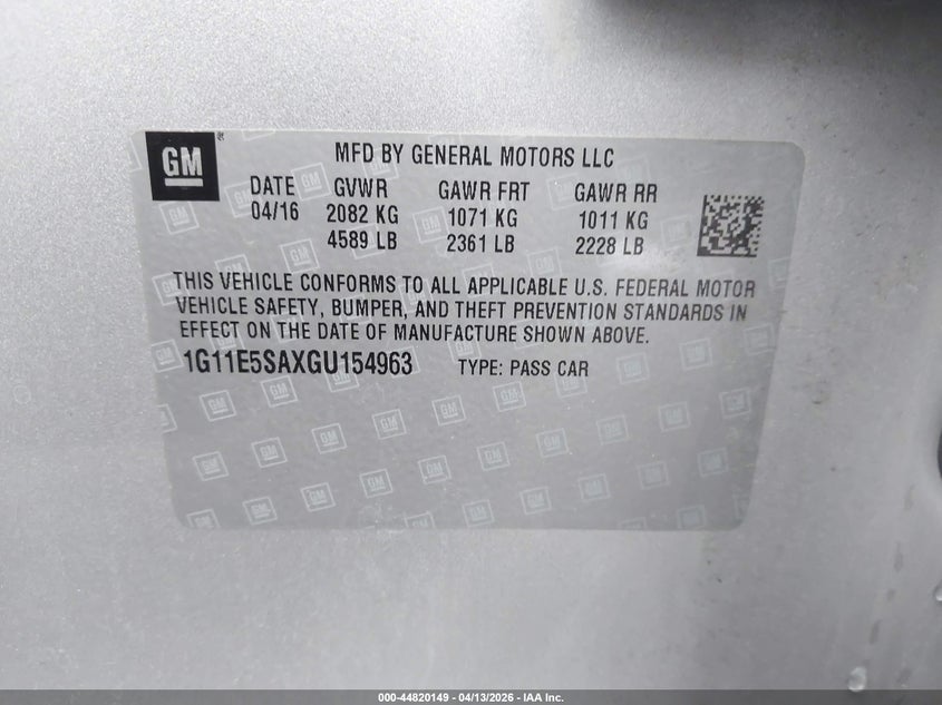 • 1G11E5SAXGU154963