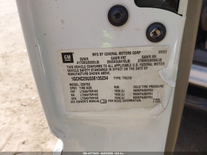 • 1GCHC29U33E135234