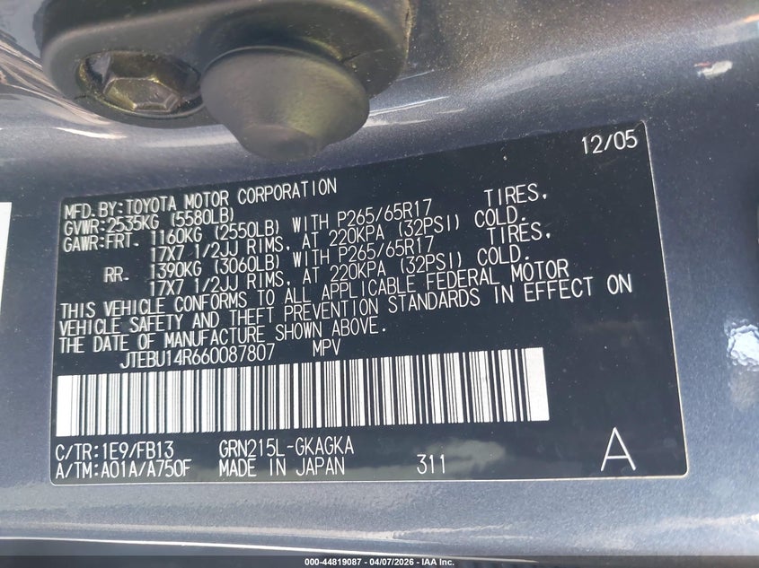 • JTEBU14R660087807