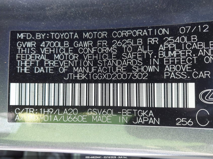 • JTHBK1GGXD2007302