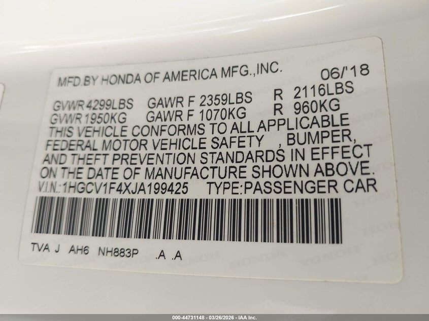 • 1HGCV1F4XJA199425