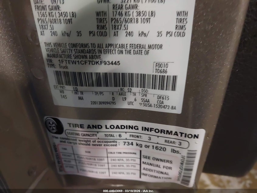 • 1FTFW1CF7DKF93445