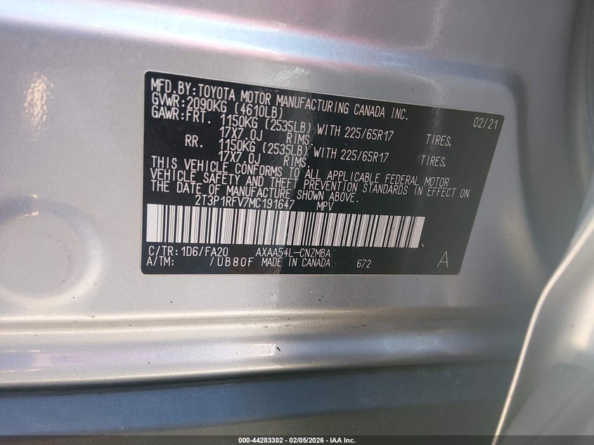 • 2T3P1RFV7MC191647