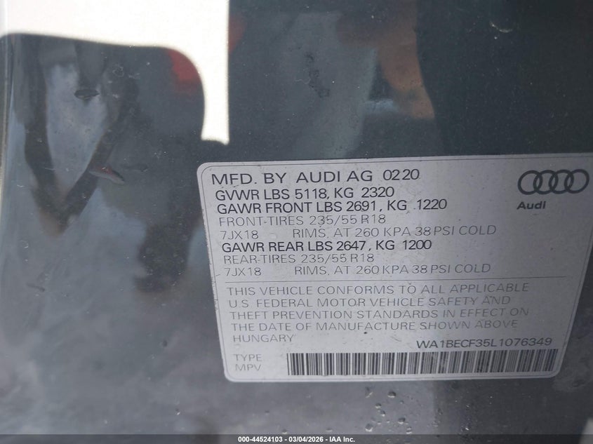 2020 AUDI Q3 PREMIUM PLUS 45 TFSI QUATTRO TIPTRONIC for Sale in Shirley, MA