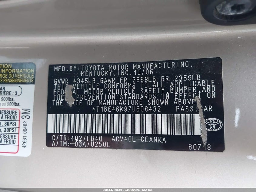 • 4T1BE46K97U608432