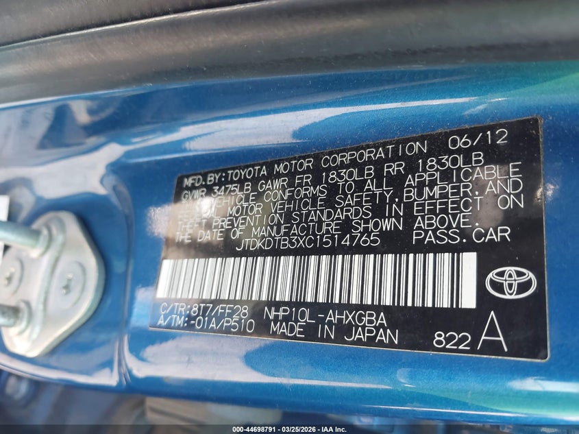 • JTDKDTB3XC1514765